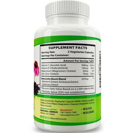 Natural Genius Immunity Boost Capsules With Elderberry Echinacea Vitamin C Daily Immune Support Supplement 60 Ct Walmart Canada